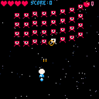 A simple game that was made following a tutorial. Silly Bomb is a 2d shooter similar to Galaga, having the same playstyle and similar properties. The objective is complete the nine waves to make it the boss level. Once this is completed then you win! Congrats! You could stop there orrrr keep trying to get the best high score you can.